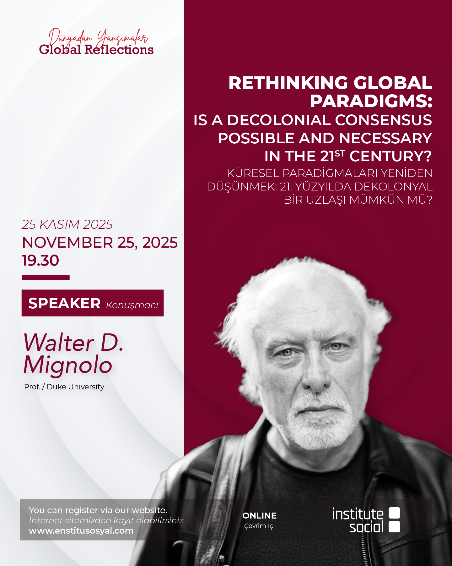 As part of Global Reflections series Institute Social is honored to welcome renowned philosopher, semiotician, decolonial theoretician and author Prof. Walter D. Mignolo from Duke University. In his talk, “Rethinking Global Paradigms: Is a Decolonial Consensus Possible and Necessary in the 21st Century?” Prof. Mignolo will explore the ways in which the supposedly “universal” knowledge and political paradigms of modernity are in fact shaped as a Western-centered colonial project, and how decolonial alternatives can be developed in which plural epistemologies coexist side by side.