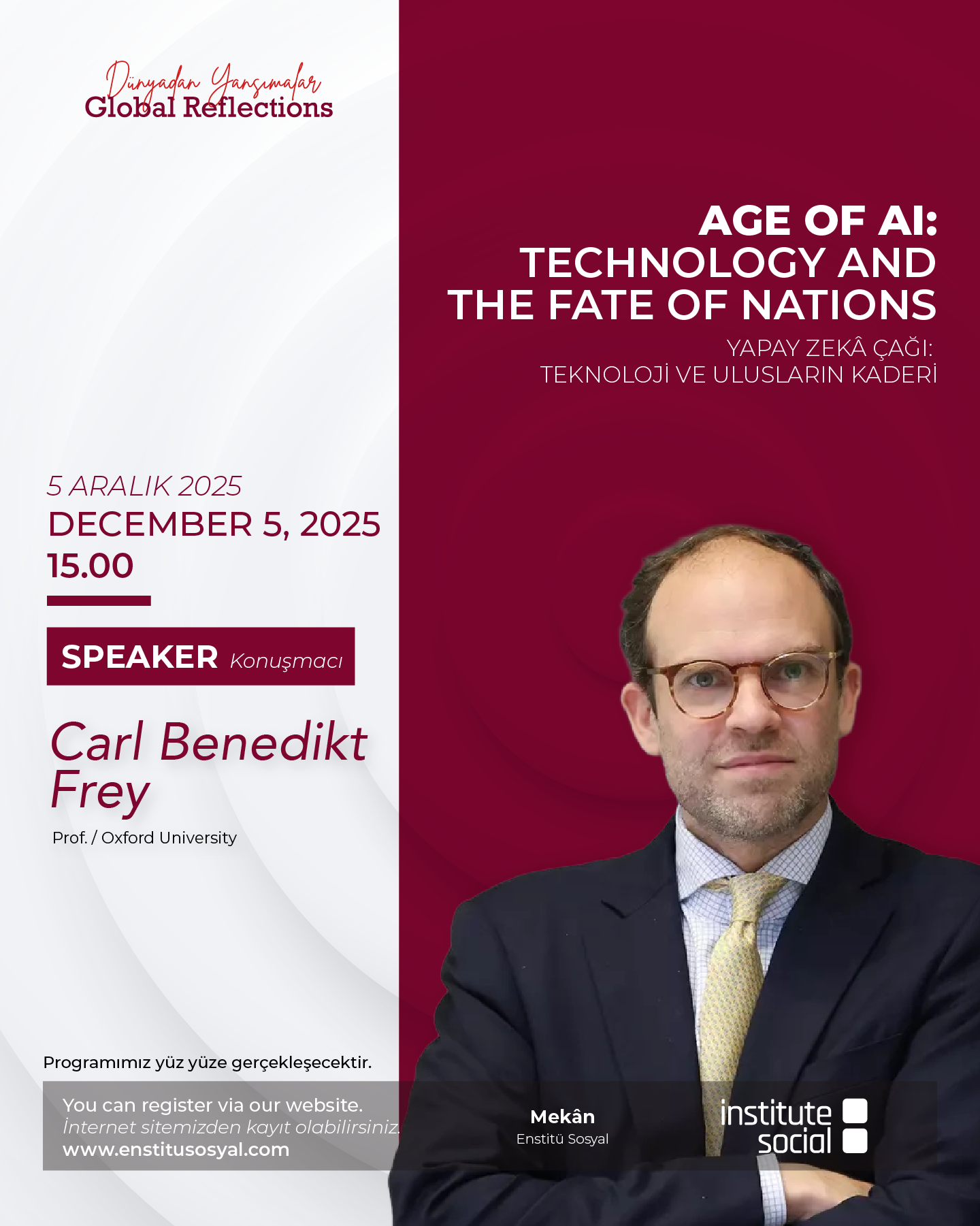 Dijital devrim ve otomasyon üzerine öncü çalışmalarıyla tanınan Prof. Frey, teknolojik değişimin yalnızca üretim biçimlerini değil, güç dengelerini ve toplumsal yapıları da nasıl yeniden şekillendirdiğini tartışacak. Söyleşide, ülkelerin bu dönüşüme nasıl uyum sağlayabilecekleri ve insan yaratıcılığının gelecekteki rolü üzerine derinlemesine bir değerlendirme sunulacak.