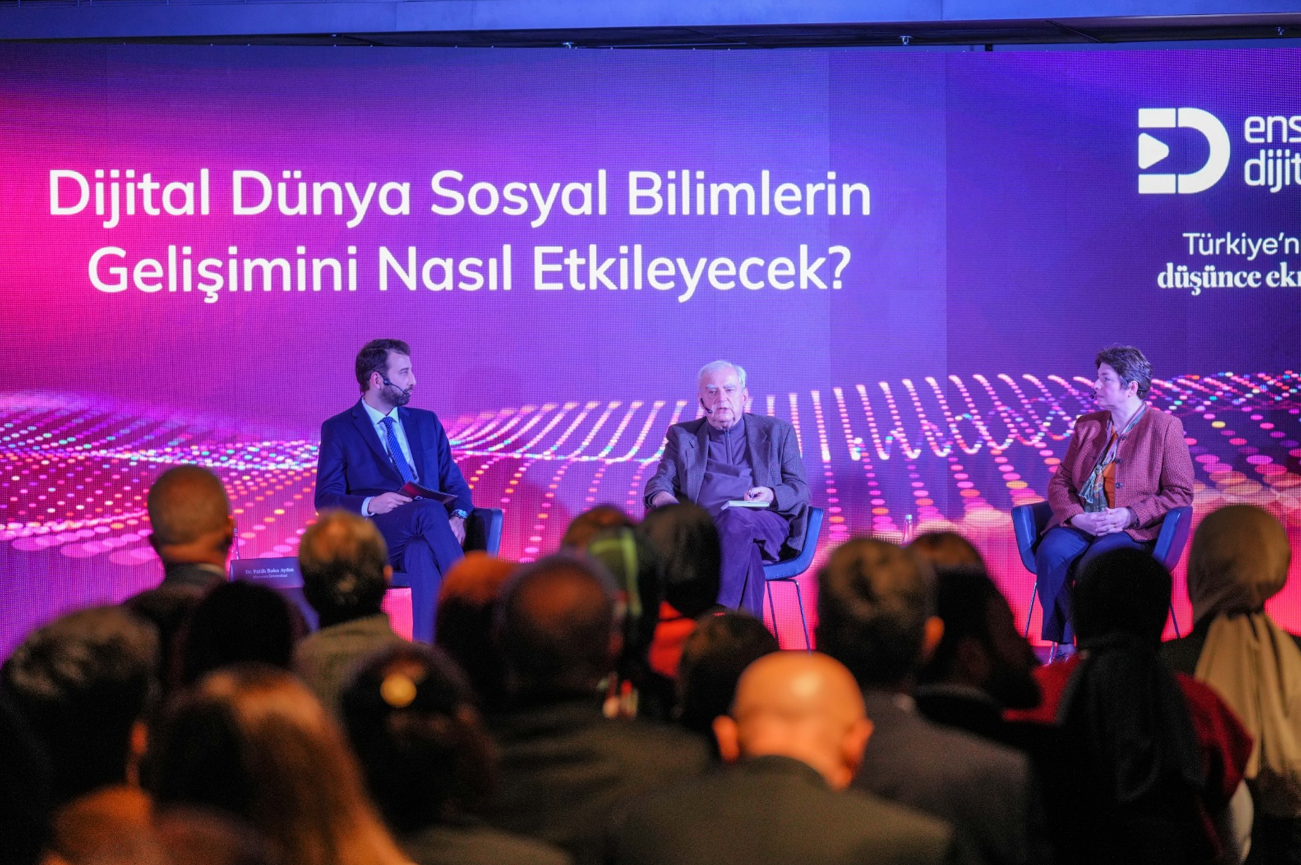 Açılış konuşmalarının ardından program, sosyal bilimlerde dijitalleşmenin geleceğinin değerlendirildiği ve bu bağlamda Enstitü Dijital gibi özgün dijital platformların sosyal bilimler açısından önemini ele alan bir panel ile devam etti. Moderatörlüğünü Dr. F. Baha Aydın’ın üstlendiği “Dijital Dünya Sosyal Bilimlerin Gelişimini Nasıl Etkileyecek?” başlıklı panelde Prof. Dr. Halil Berktay ve Prof. Dr. Nilüfer Pembecioğlu yer aldı. Panelde dijitalleşme sürecinde sosyal bilimlerin bilgi üretim biçimlerinin nasıl değiştiği, büyük veri ve algoritmaların etkisiyle değişen araştırma pratikleri ile ortaya çıkan etik sorunlar, akademik bilginin demokratikleşmesi ve özgünlük tartışmaları ve dijital platformların sosyal bilim eğitimine etkileri ele alındı.