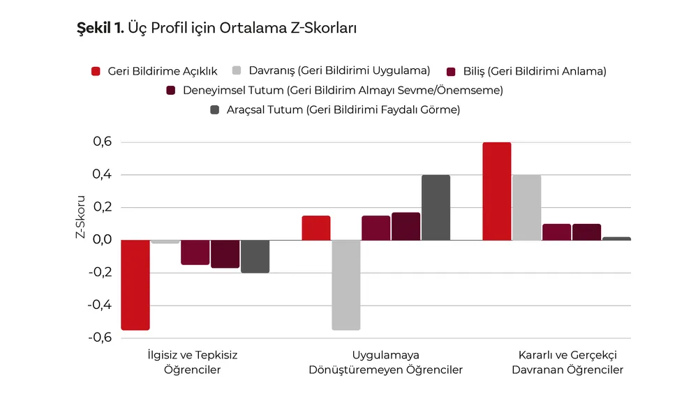 - Kararlı ve Gerçekçi Davranan Öğrenciler (Committed Realists): Bu profil, geri bildirimi anlama, uygulama, geri bildirim almayı sevme/önemseme ve bunu faydalı görme boyutlarının tümünde yüksek düzeyde performans gösteren öğrencilerden oluşmaktadır. Bu öğrenciler, geri bildirimi hem kolaylıkla anlayabilmekte hem de etkili biçimde uygulamaya geçirebilmektedir.