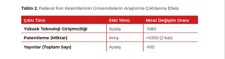 Çalışma, bütçe kesintilerinin yarattığı tahribatı, yüksek teknoloji girişimciliği, patentleme faaliyetleri ve akademik yayın performansı olmak üzere üç temel çıktı kanalı üzerinden takip etmektedir.