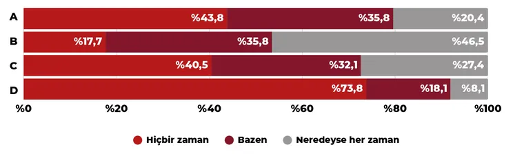 YEDAM’ın verilerine göre (2024), tedavi için başvuru yapan kişilerin %35,3’ü günde 6 saatten fazla kumar oynamaktadır. Bulgularda detaylandığı üzere bu durum kişilerin günün büyük bir bölümünü bu şekilde kumarla geçirmesi ailevi ilişkileri de olumsuz etkilemektedir.