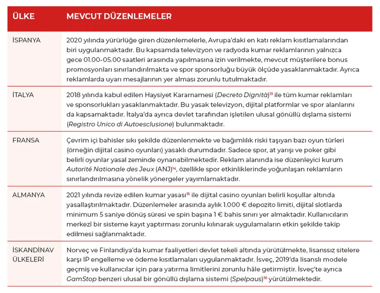 Politika yapıcılar dünyanın dört bir yanında dijital kumarın zararlarını ele almaya başlamakta, ancak dijital kumara yönelik yaklaşımlarda büyük farklılıklar görülmektedir. Bazı yetkililer sektördeki aşırılıkları engellemek amacıyla katı düzenlemeler uygularken, bazı ülkeler ise bu düzenlemeleri henüz yeni oluşturmaya başlamış veya mevzuatları teknolojik gelişmelere uyarlama konusunda geride kalmıştır (Devaney, 2009; Wilson ve ark., 2024). Dijital kumar regülasyonlarındaki küresel çeşitliliği anlamak, Türkiye’nin konumunu belirlemek için önem taşımaktadır. Bu bağlamda, aşağıda kritik bölgelerdeki (Birleşik Krallık, Avrupa Birliği ve ABD) mevcut yönetmelikler incelenmekte ve bu yönetmelikler arasındaki farklılıklar tespit edilmektedir.